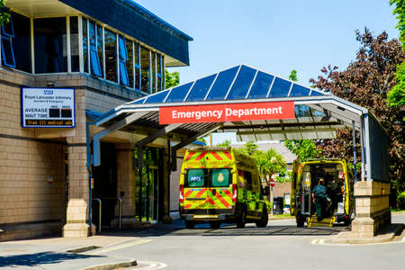 Lancaster UK 30 May 2020 emergency ambulances at Lancaster Royal Infirmary A and E