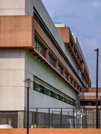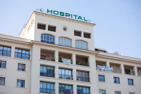Malaga, Spain - April 10, 2020: A view of Hospital Regional de Malaga facade