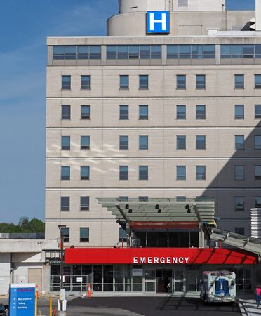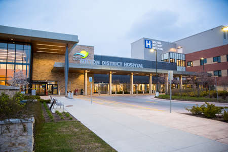 Milton, Ontario / Canada - May 09 2020: Milton Hospital main entrance. Halton District Hospital