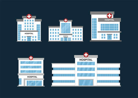 Set flat vector design of hospital buildings. Hospital vector suitable for infographic, graphic resources, game assets, medical concept, and more.