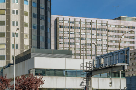MADRID, SPAIN - OCTOBER 6, 2021: View of La Paz University Hospital in Madrid, one of the largest hospitals and best valued public owned hospitals in Spain