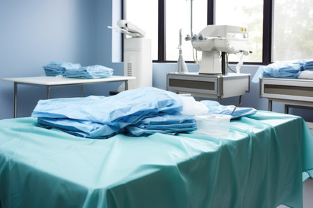 sterile drapes and surgical covering materials on a clean table, created with generative ai