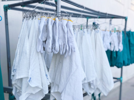Clothes drying on the rack in the dry-cleaning salon