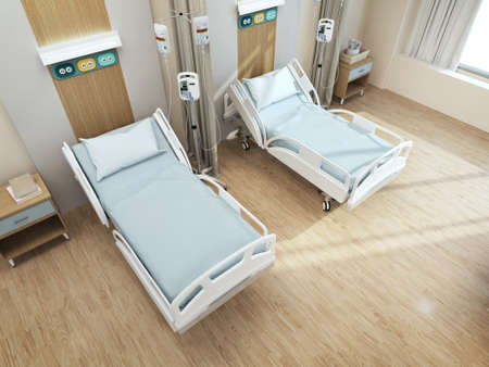 Top view of hospital recovery room with beds.3d rendering