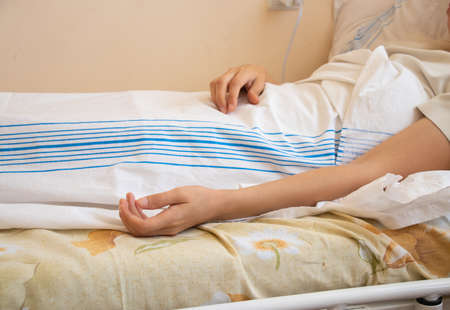 In the Hospital Sick Male Patient Sleeps on the Bed