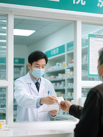 A dedicated pharmacist meticulously checks medication expiration dates, prioritizing patient safety and quality control Their vigilance ensures that only fresh, effective medications are dispensed, safeguarding health and well-being in medical settings AI Generative