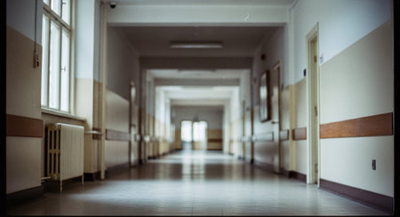 Interior of a corridor in a hospital, shallow depth of field