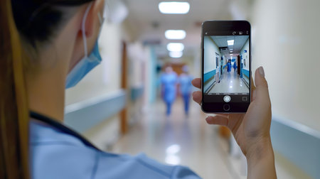 Medical professional using a smartphone camera in a hospital. the convergence of technology and healthcare. A.I.