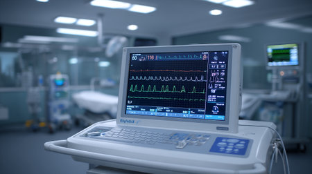 Medical Monitor Displaying Patient Vital Sign Readings in a Modern Operating Theater Environment.