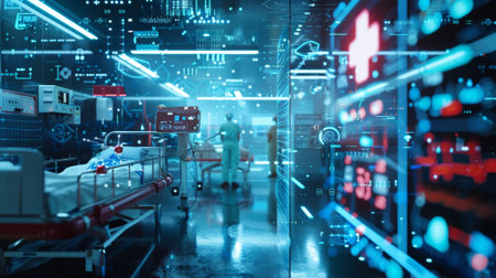 nice abstract high tech hospital room with overlays, cgi abstract 3D rendering