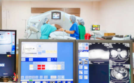 Blurred background of Nurse preparing patient before CT scan test in hospital room