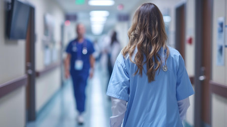 Medical staff passing through hospital wards. Generative AI
