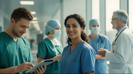 Doctors, nurses and medical staff in a hospital. Generative AI