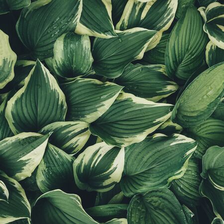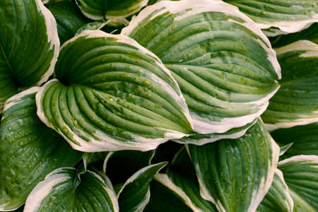 Green variegated Hostas. Hosta plant is popular Perennial flower grows in wet shady places