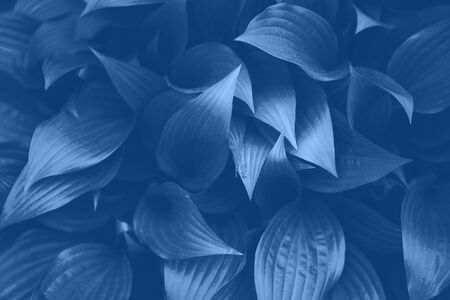 Top view of beautiful leaves background colored with Classic blue color the color of 2020.