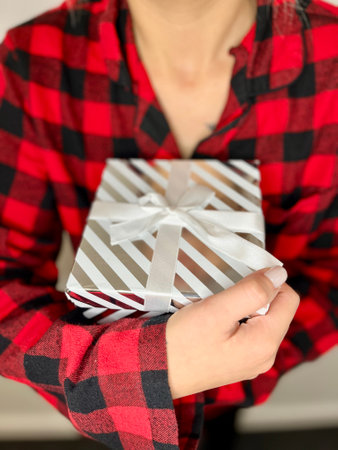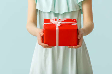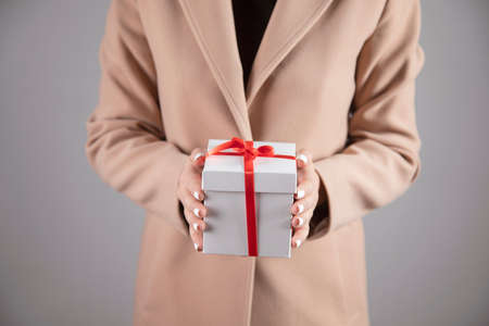 Closeup of woman's hands with nice gift box. Present for birthday, Christmas or any other celebration.