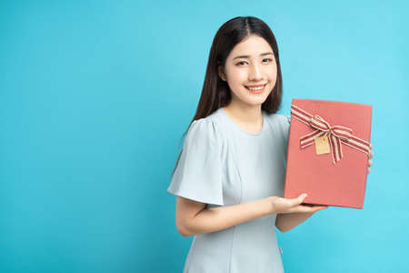 portrait of asian woman holding gift box