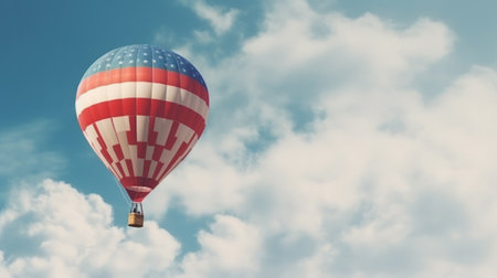 A vibrant hot air balloon soaring through the sky in patriotic colors. Created with Generative AI technology