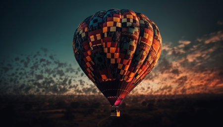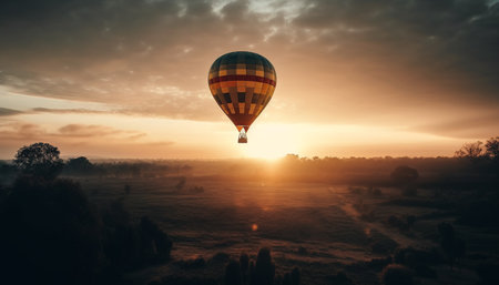 Colorful balloon soars through nature fiery sunset generated by artificial intelligence