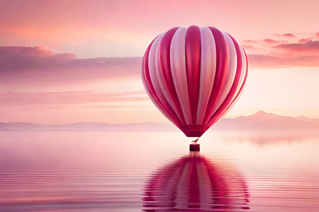 A sleek hot air balloon icon gracefully floats in a pastel sky at dawn, symbolizing exploration and the beauty of flight.