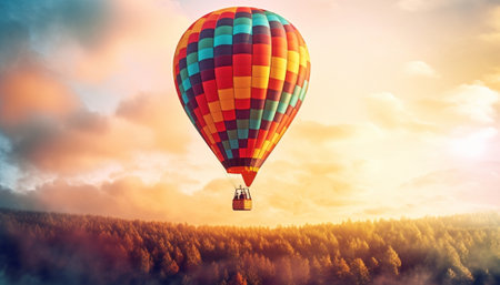 Colorful hot air balloon is flying at sunrise : Generative AI