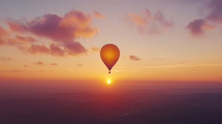 A breathtaking scene of a hot air balloon soaring over a vibrant sunset, showcasing a blend of warm colors and natural beauty, perfect for adventurous spirits.