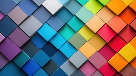 This vibrant and colorful image features a dynamic arrangement of three-dimensional cubes in a variety of bright shades. Perfect for creative projects, backgrounds, or artistic inspirations.