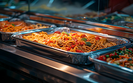 Crowd of people enjoying buffet food meal dining Food Options Eating Concept in hotel buffet