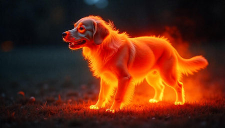 Mischievous dog caught in the act, savoring a stolen hot dog with sheer delight. Created with generative AI tools