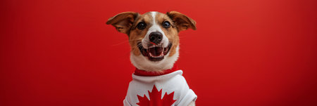 Cute funny dog with Canadian Flag. Creative concept for Canada Day. Funny pet