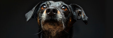 Portrait of a mixed breed dog on a black background. Studio shot.
