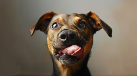 Charming Close-up Portrait of a Playful Puppy with Big Eyes and Adorable Expression in Studio Light