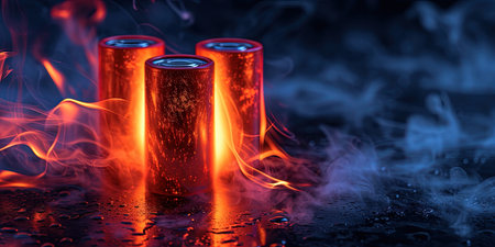 Photo of lithiumion battery fire illustrating safety hazards and risks emphasizing the importance of fire prevention. Concept Fire Safety, Lithium-ion Batteries, Fire Hazards, Risk Prevention