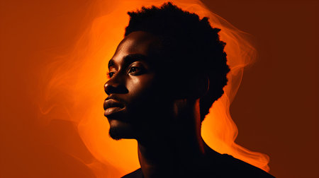 Silhouette of man in sunglasses against vibrant orange background, creating a striking and stylish image