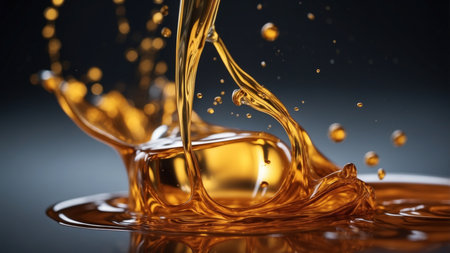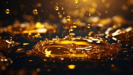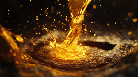 This captivating image features a dynamic splash of golden liquid, showcasing luxurious textures and fluid movement that evoke warmth and elegance.