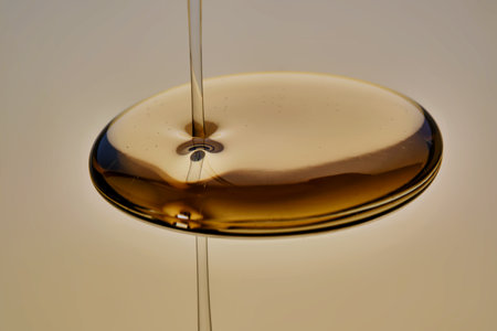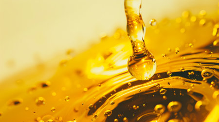 AI Generated. Amber Liquid Pouring Creating Swirling Ripples and Bubbles Close Up Macro Shot