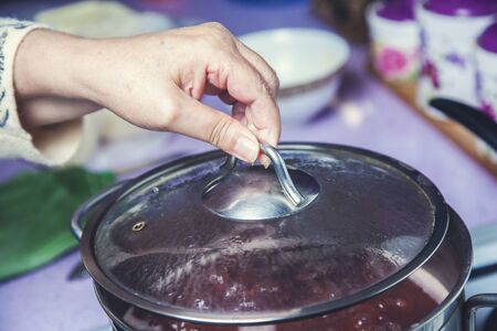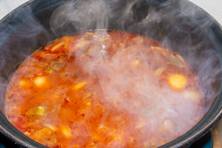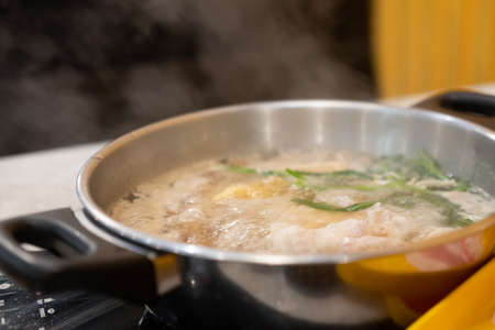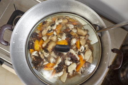 Cooking a delicious meal in a steaming pot on the stove
