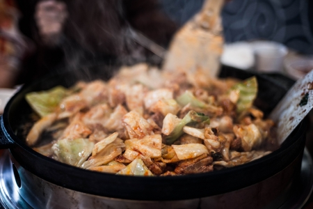 Korean food of army stew or army base stew (Budae Jjigae) in the restaurant