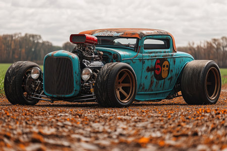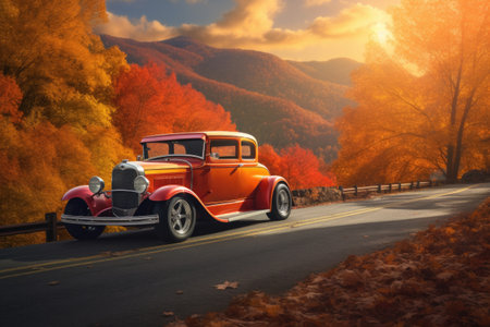 vintage hot rod parked on a scenic route, created with generative ai
