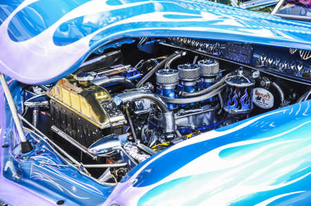 Pomona, USA - March 12, 2016: Customized muscle car engine displayed during 3rd Annual Street Machine and Muscle Car Nationals