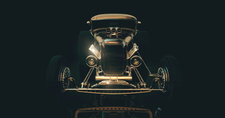 Classic hot rod speeding through the night depiction