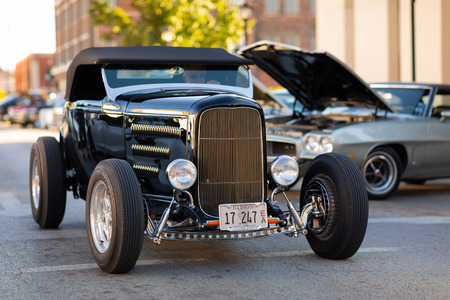 Springfield, Illinois, USA - September 22, 2018: The Route 66 Mother Road Festival, Ford Hot Rod being driven on the streets of downtown Springfield