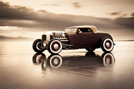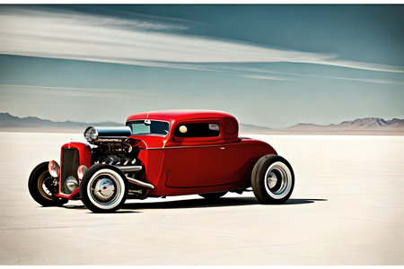 Vintage Hot Rod In Salt Flats. Illustration. Generative AI
