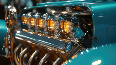 shiny classic car engine with chrome parts, created with generative ai