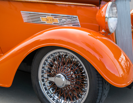 Cropped front view of a restored retro car.