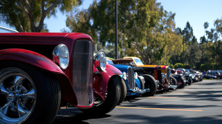 Vintage american classic cars in a row at a car show