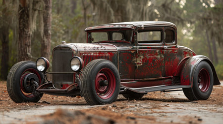 Vintage Elegance: A Rustic Classic Car Amidst the Whispering Woods