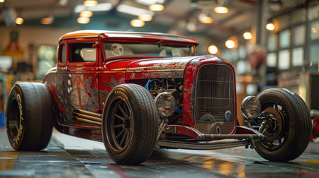 Vintage Elegance: A Customized Classic Car in a Modern Workshop