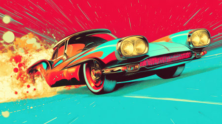 Vintage Comic Car with Dynamic Electric Effects