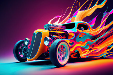 customized hot rod with unique paint job, created with generative ai